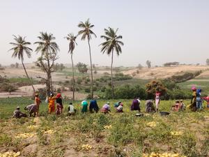 Collective potato harvesting in Senegal.